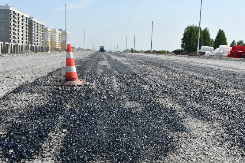 Продолжается строительство дороги в Новокузнецке в новом микрорайоне Березовая роща