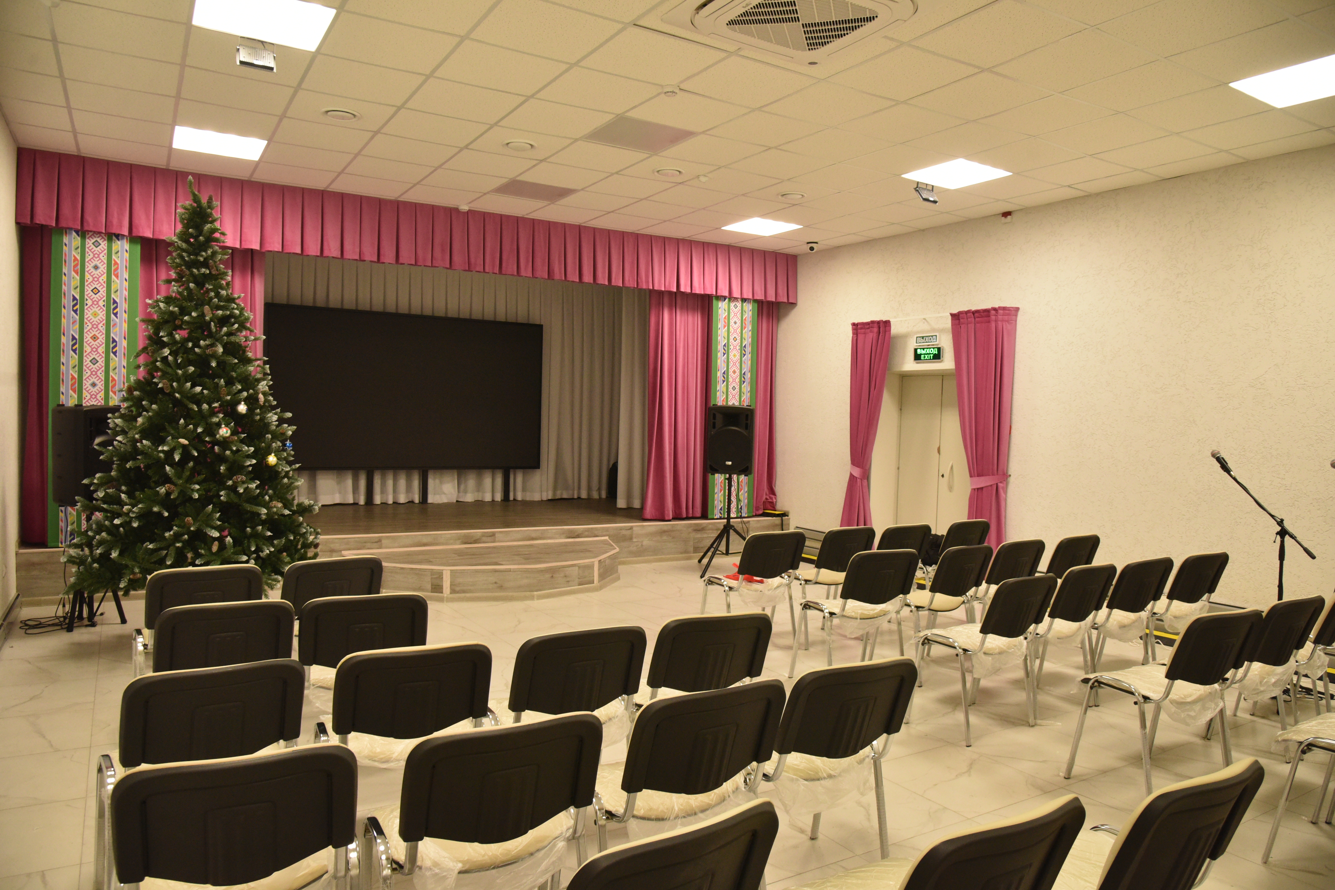 В здании разместили универсальный зал, артистическую, библиотеку, студию национальных ремесел и студию по изучению телеутского языка.