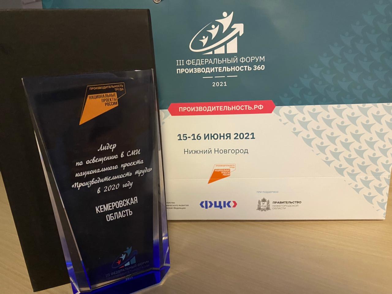 В рамках III Федерального форума «Производительность 360» состоялась торжественная церемония награждения регионов-лидеров по информационному сопровождению реализации национального проекта «Производительность труда» в СМИ по итогам 2020 года.