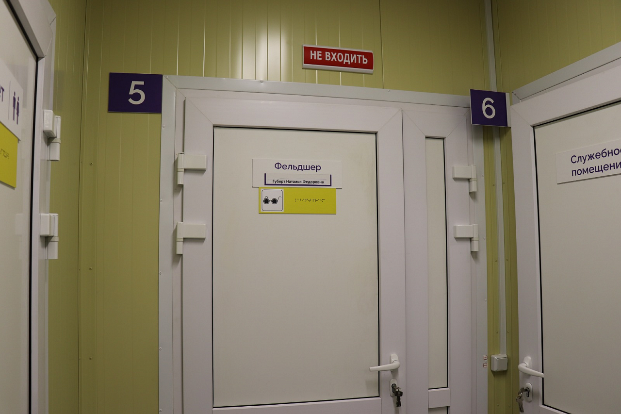 В модульном строении на площади 86,4 кв.м. расположились кабинет фельдшера, процедурный-перевязочный кабинет, помещение для хранения медицинских препаратов, комната для персонала, санузел. Для комфорта пациентов имеется зона ожидания, обеспечена доступная среда для маломобильных граждан.