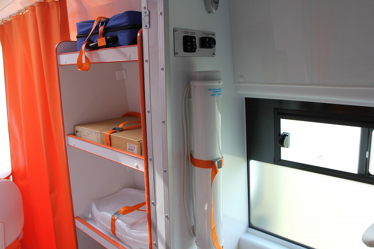 Мобильный ФАП также оснащен компьютером и телефоном для связи. Имеется два холодильника, горячая и холодная вода, электропечки, системы вентиляции и кондиционирования. Все оборудование работает от автономного электропитания.