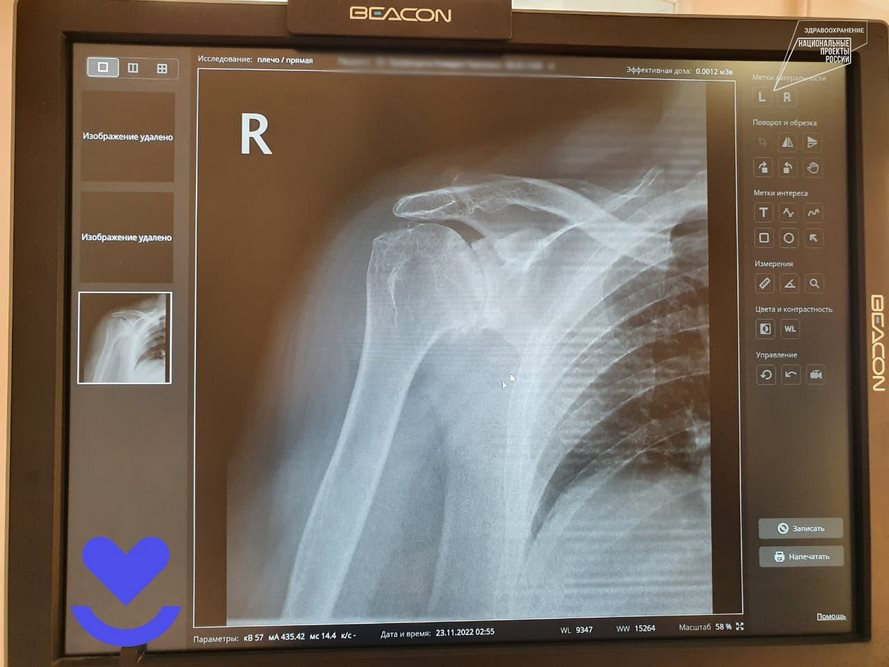 Рентген-комплекс установили вместо пленочного аппарата, который прослужил более десяти лет. На новом оборудовании можно проводить обследования в трех режимах: рентгенографии, рентгеноскопии и линейной томографии. Функциональные возможности аппарата позволяют выполнять сканирование пациентов в любом положении (сидя, лежа, стоя). Кроме того, изображения можно изменять, в том числе масштабировать и менять контрастность, чтобы детально рассмотреть интересующую область.