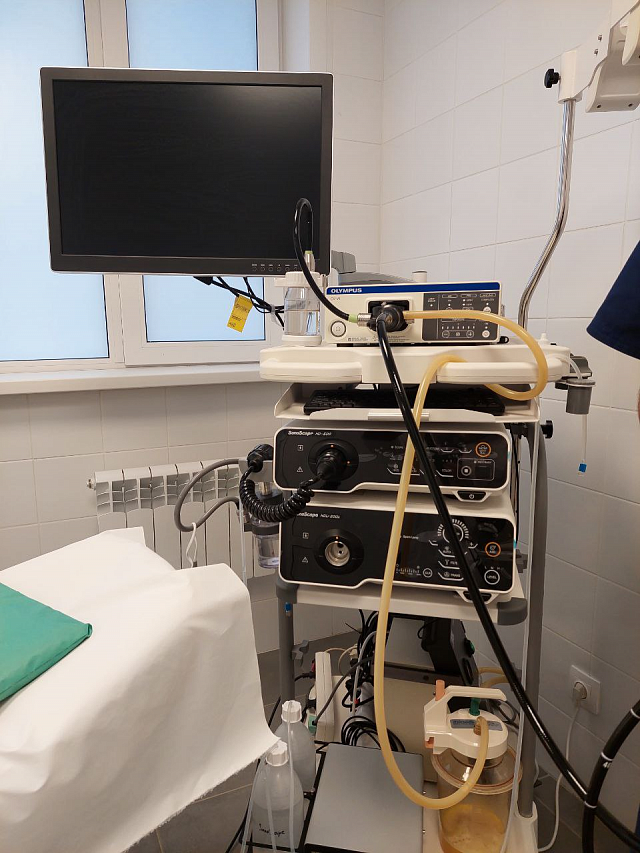 Эндоскопический кабинет хирургического отделения пополнился двумя современными гибкими эндоскопами для исследования внутренних органов. Главная особенность аппаратов — светодиодная подсветка, которая долго не требует замены. Кроме того, в помощь врачам появились две ирригационные эндоскопические помпы. Они применяются во время проведения диагностических манипуляций.