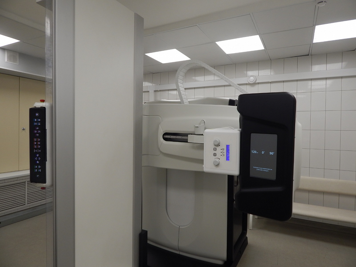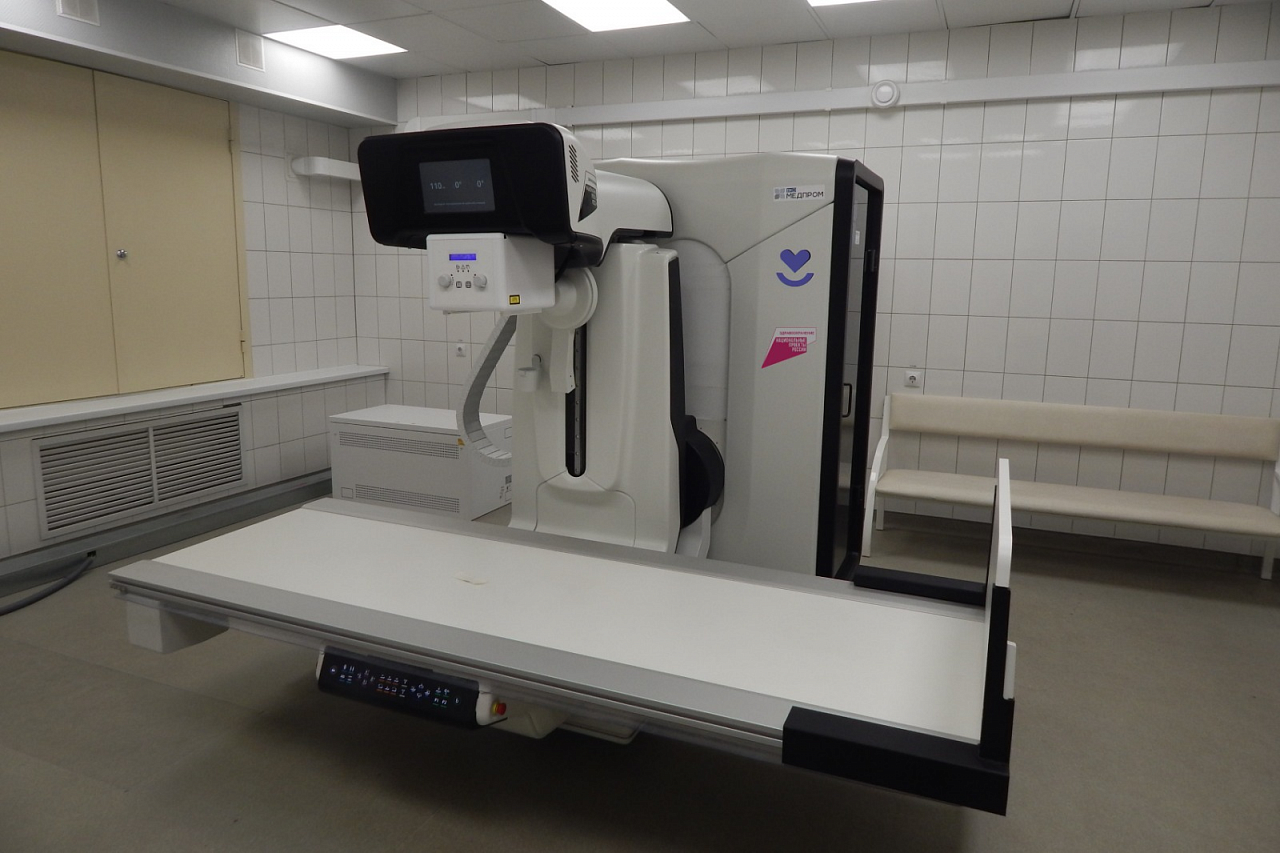 Телеуправляемый аппарат Р-600 «Полидиагност» пришел на смену старому рентгеновскому аппарату. Оборудование позволяет проводить рентгенографию, рентгеноскопию, импульсную рентгеноскопию, линейную томографию, получать панорамные снимки, а также может работать в режиме томосинтеза и мультиэнергии. При этом, особенности аппарата позволяют выполнять обследования пациентов в любом положении: сидя, лежа, стоя. Это позволяет сделать обследования более комфортными для пациентов с травмами и ОВЗ.