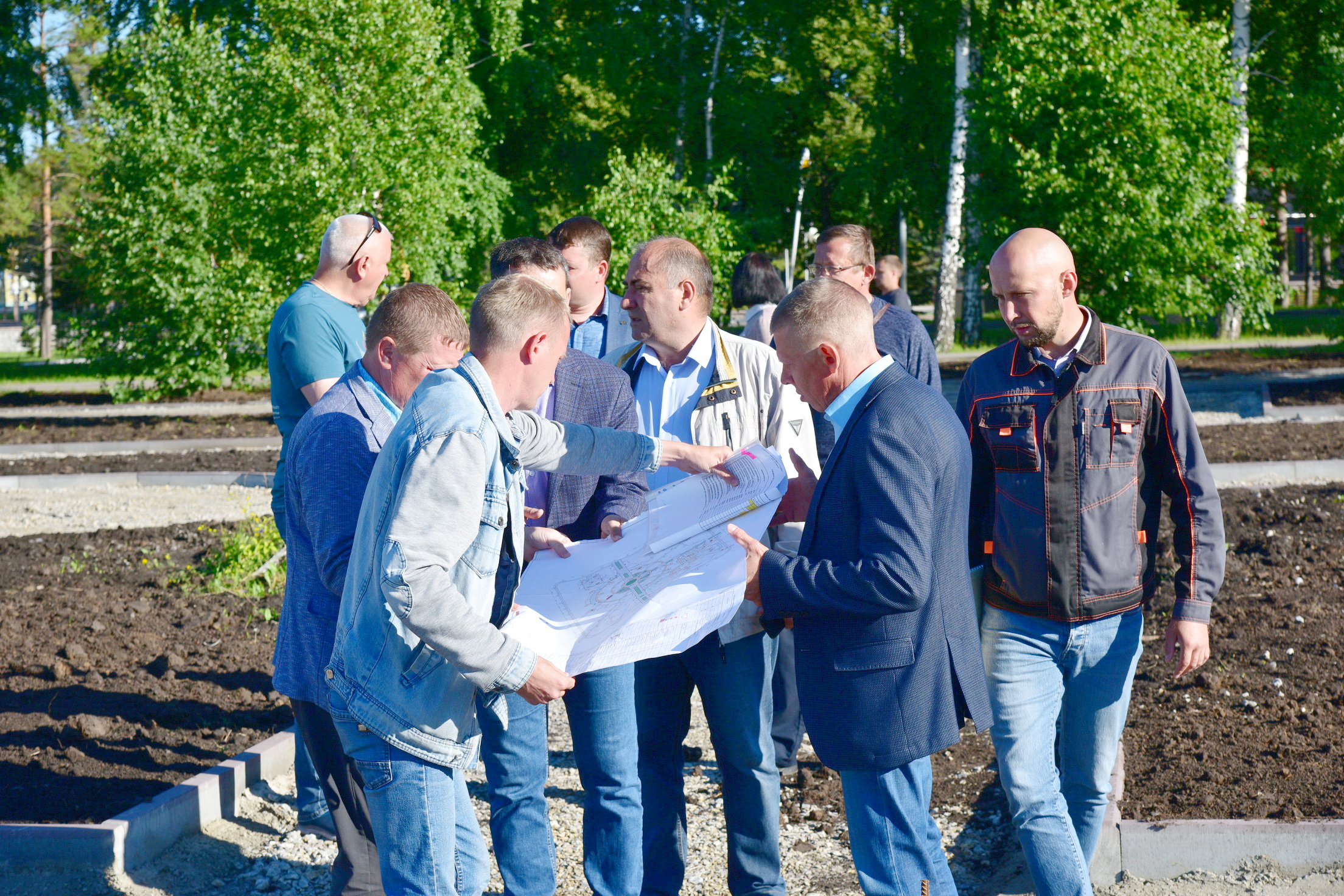 Глава города Алексей Курносов вместе с подрядчиками рассмотрели вопросы, связанные с благоустройством общественной территории.