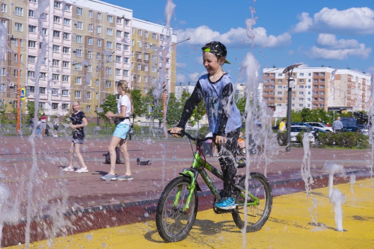 В 2020 году также в рамках нацпроекта отремонтировали площадь Праздничную. Главным элементом на ней стали пешеходные фонтаны: летом прямо из мостовой вырываются водяные струи, а в вечернее время они подсвечиваются.