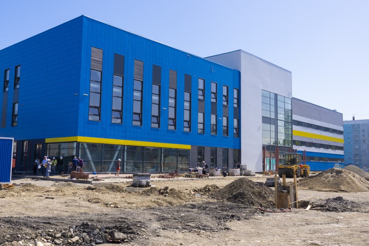 Еще один объект, который в прошлом году начали строить с нуля, — спортивный комплекс. В здании разместятся 25-метровый бассейн на восемь дорожек, маленький бассейн для детей, универсальный спортзал с местами для зрителей, а также хореографический, тренажерный и фитнес-залы, скалодром и кафе.