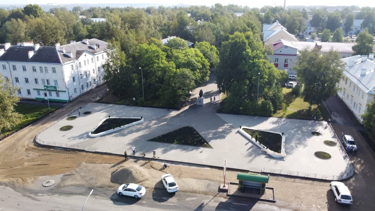 Еще одним пунктом поездки стала площади имени Александра Матросова, которую ремонтируют средства гранта, полученного Анжеро-Судженском в связи с присвоением в 2020 году почетного областного звания «Город трудовой доблести и воинской славы». На площади уже уложили тротуарную плитку, разбили цветники, отремонтировали постамент и обновили скульптуру героя. До 9 сентября планируется установить скамейки, заасфальтировать территорию и оборудовать парковку. Финансирование работ составит свыше 6,6 млн рублей.