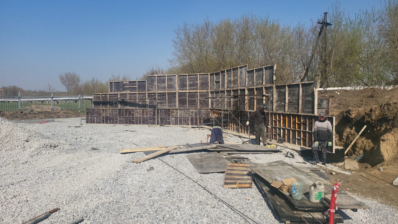 Подрядчики выкладывают брусчатые дорожки, выставляют бортовой камень, возводят стену для скалодрома. Сооружение станет «фишкой» проекта.
