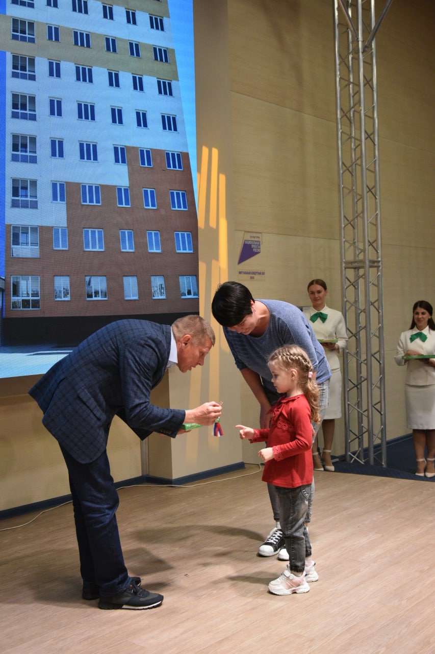 В Белове ключи от квартир в новом доме в квартале «Сосновый» получили 15 детей-сирот, 4 семьи — переселенцы из аварийного жилья, 44 новосела из категории социально незащищенных граждан (многодетные семьи, инвалиды, военнослужащие).