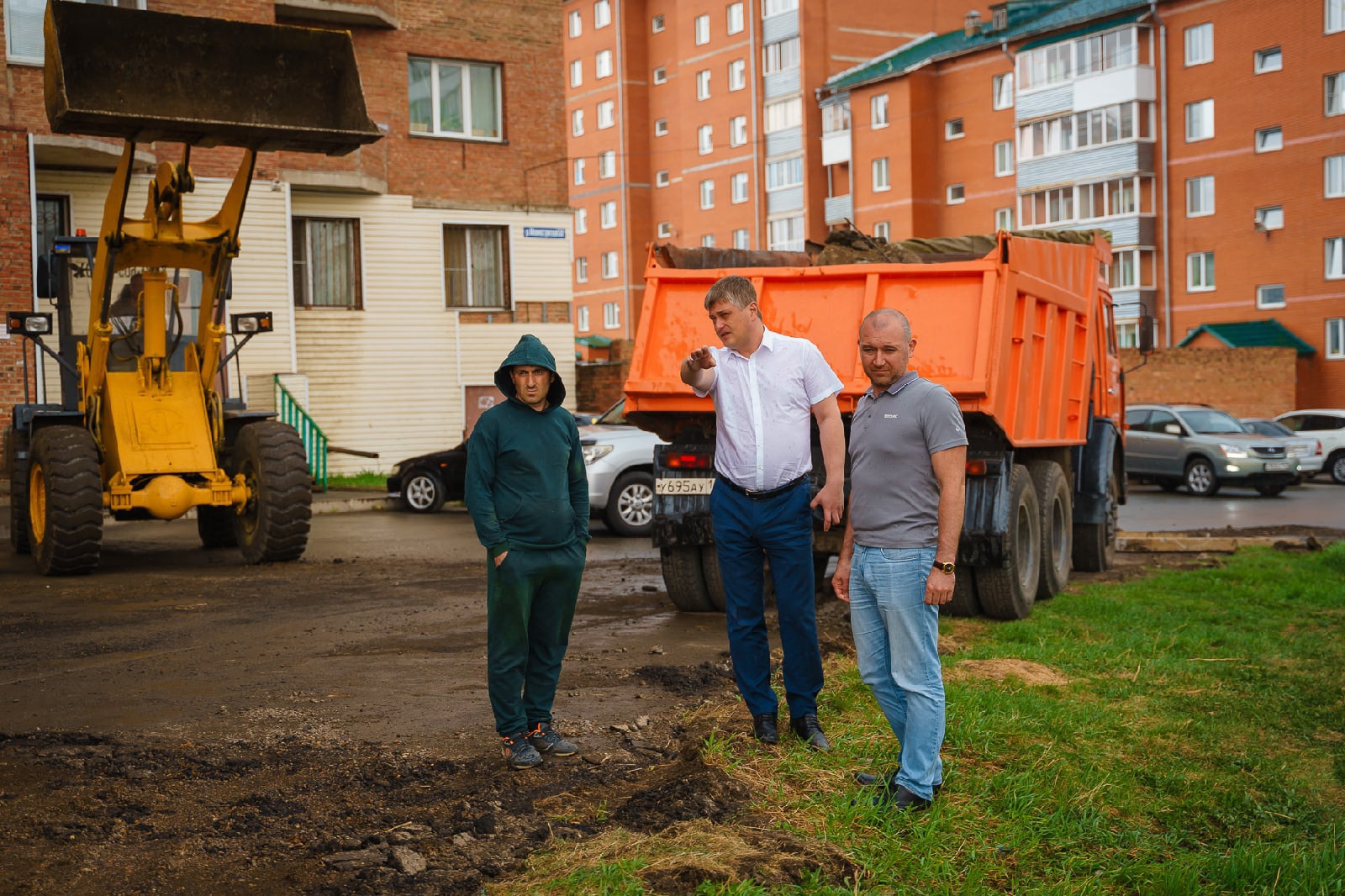В Юрге начался ремонт общественных и дворовых территорий в рамках проекта «Формирование комфортной городской среды» нацпроекта «Жилье и городская среда». Глава города Алексей Фомин вместе с заместителем по ЖКХ Владимиром Маняхиным побывал возле памятника Строителям и во дворе по ул. Машиностроителей, 55А, где подрядчики приступили к работе.